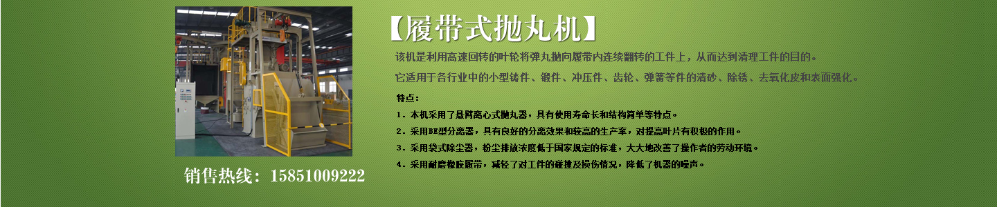 公司主要產(chǎn)品有各種型號拋丸機(jī)、履帶式拋丸機(jī)、吊鉤式拋丸機(jī)、懸鏈?zhǔn)綊佂铏C(jī)、通過式拋丸機(jī);各種型號鑄鋼丸、鋼砂、合金鋼丸、強(qiáng)化鋼丸、不銹鋼丸;噴砂設(shè)備;環(huán)保除塵設(shè)備;鑄造設(shè)備;高效拋丸器;各種型號拋丸機(jī)配件等,并可根據(jù)用戶產(chǎn)品及產(chǎn)量需求設(shè)計符合要求的拋丸機(jī);本公司產(chǎn)品從設(shè)計、開發(fā)、生產(chǎn)到服務(wù),全過程實行監(jiān)控,其產(chǎn)品在全方位立體的營銷服務(wù)網(wǎng)絡(luò)中,遍布全國各省市區(qū)。